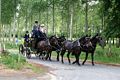 - Le marathon : épreuve chronométrée, elle a lieu sur des sections différentes, chacune servant à juger le meneur sur un parcours en terrain varié, la vitesse, la maniabilité et les capacités physiques des chevaux. Certaines sections sont de la route, avec allure libre ou imposée (pas ou trot), alors que d'autres abritent des obstacles naturels ou artificiels : dévers, gué, chicanes, rampes, … Les obstacles au nombre de 5 à 8 sont chronométrés individuellement.